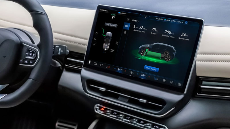 Với kích cỡ 12,9 inch, có thể tùy chỉnh cá nhân hóa theo người dùng. Màn hình giải trí cảm ứng của VF 7 có thể giúp điều khiển các chức năng trên xe bằng cách vuốt/chạm nhẹ hoặc ra lệnh cho trợ lý ảo qua giọng nói.