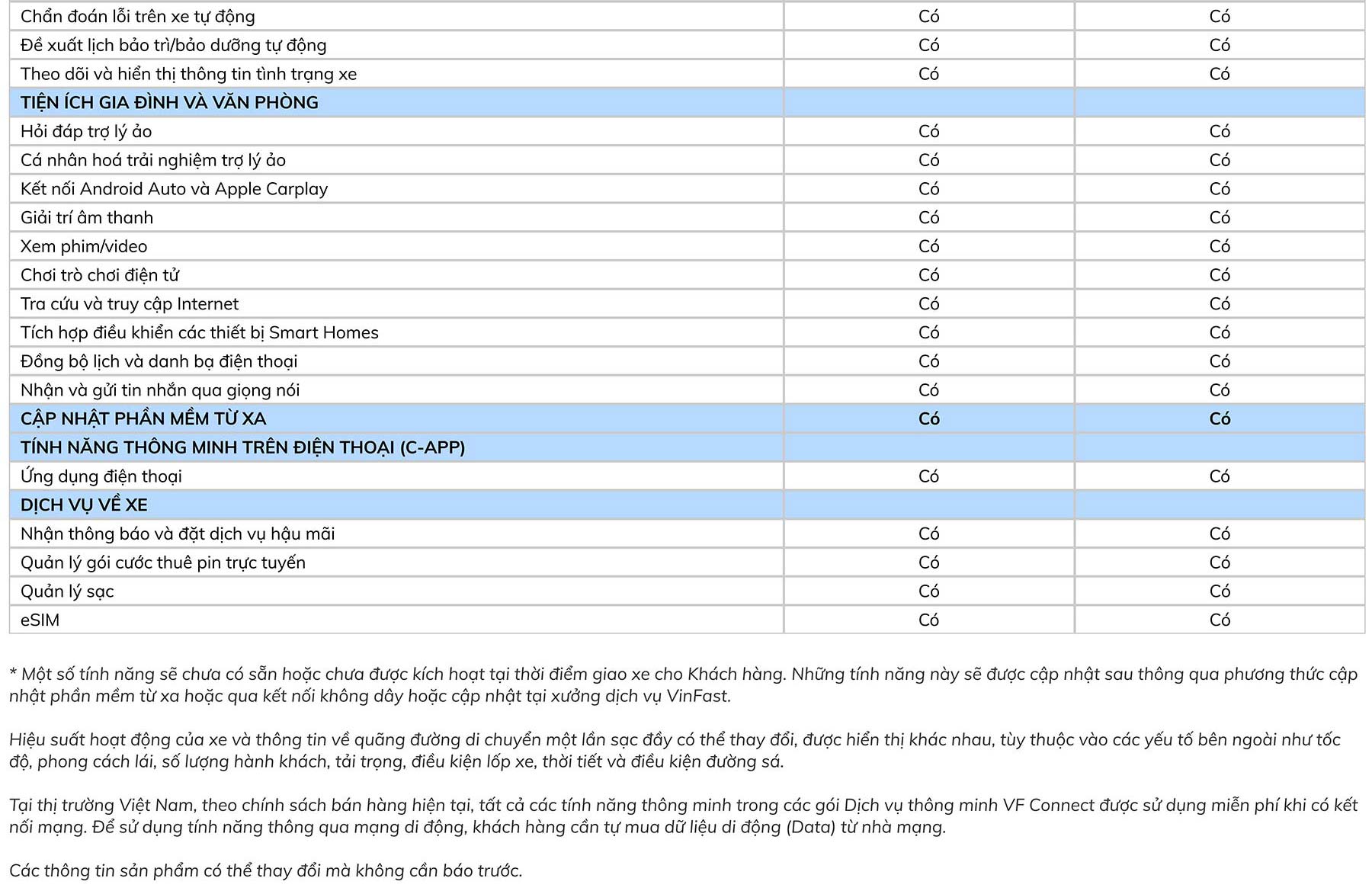 Ứng dụng VinFast: Với ứng dụng VinFast, Khách hàng kiểm tra tình trạng của các trạm sạc, xem dữ liệu về xe, đặt lịch bảo dưỡng, trợ giúp. Quan trọng hơn, ứng dụng VinFast giúp điều khiển xe, bật điều hòa từ xa để bạn luôn thoải mái ngay từ khi bước lên xe.